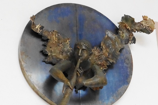 Engel-Skulptur komplettiert Kunst in der Aula