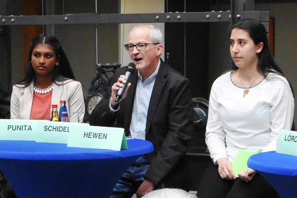 Zara Baumeister, Finn Krebs und Samuel Kleijn im Landesfinale von „Jugend debattiert“