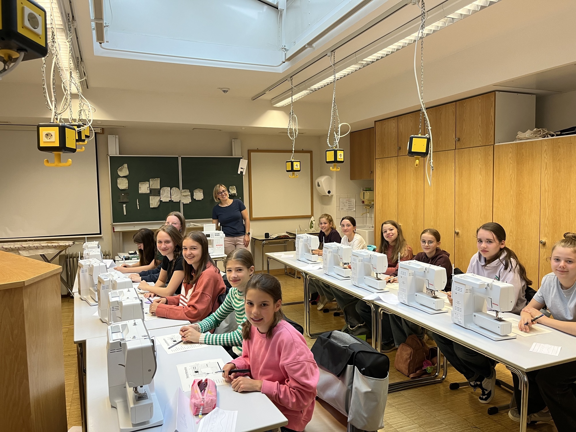Am ersten Tag haben die Schülerinnen die Nähmaschine kennengelernt, verschiedene Stiche ausprobiert und Stoffe für den Turnbeutel, der in den folgenden Tagen genäht werden sollte ausgeschnitten. Am zweiten Tag begannen die Näharbeiten für den Turnbeutel. Am dritten Tag wurden die Turnbeutel fertiggestellt und es wurden Mäppchen genäht.Text und Foto: Luisa Schumacher und Franziska Süvern
