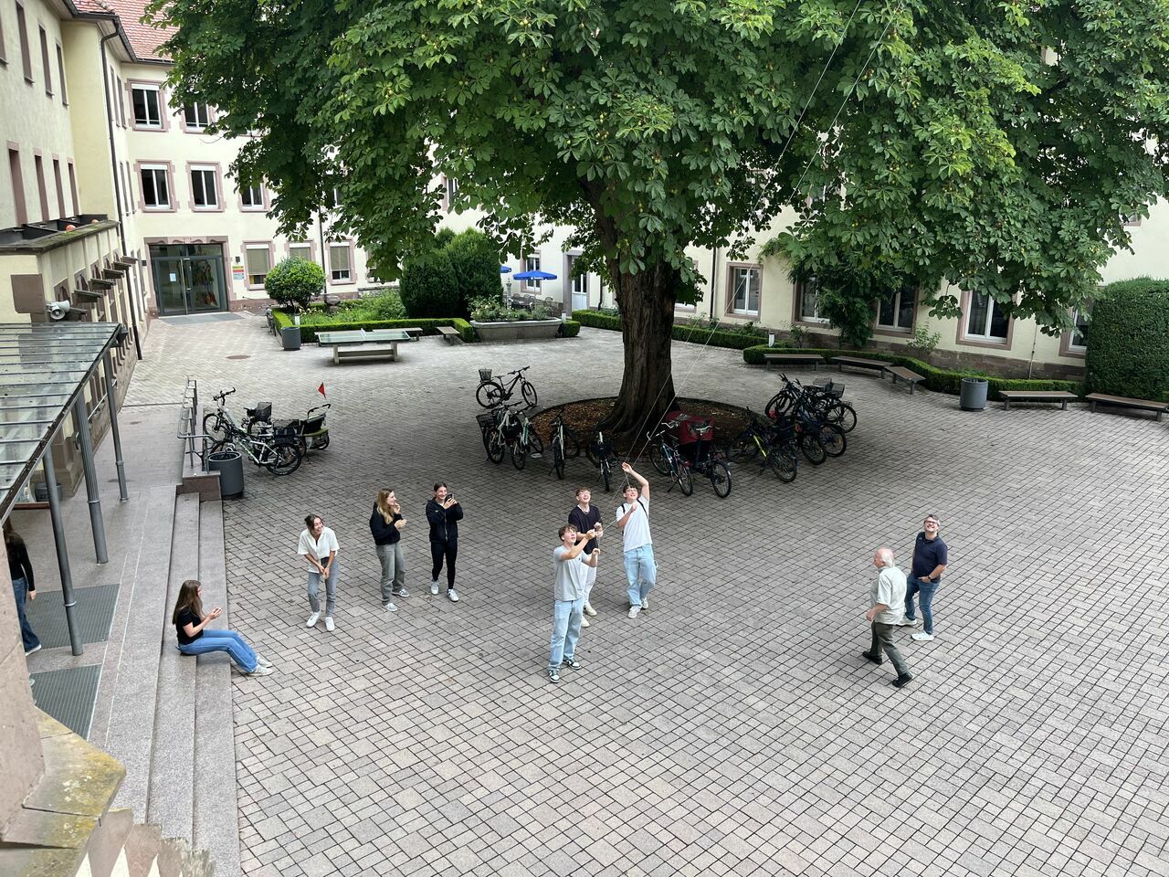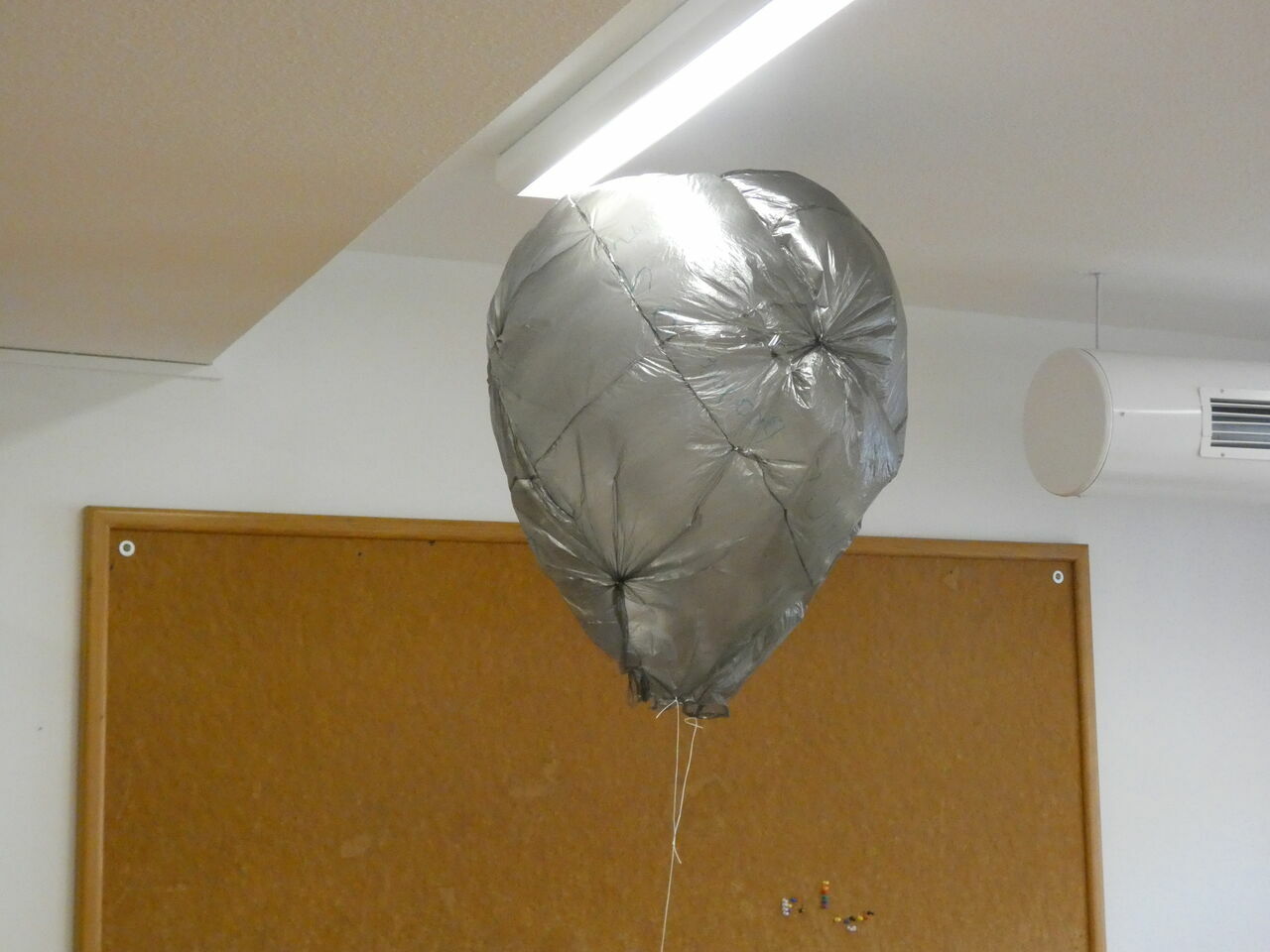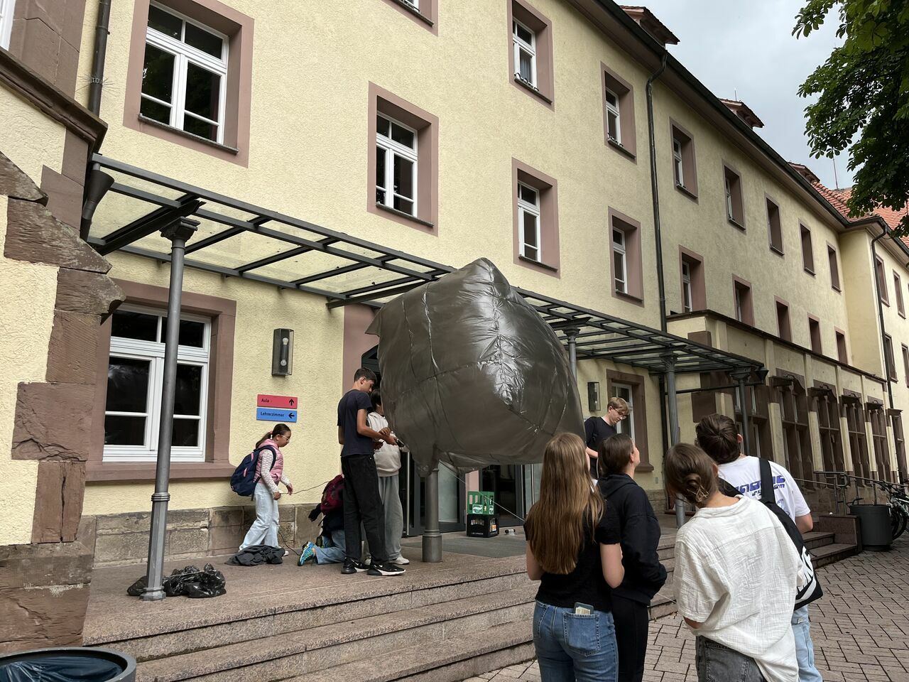 Bei dem Projekt mit Herrn Eschbach hatten die Teilnehmer die Möglichkeit, aus Mülltüten Heißluftballone zu bauen, die sich im Sonnenlicht aufwärmen und in der Luft schweben. Die Schüler hatten die Möglichkeit, verschiedene geometrische Formen auszuprobieren.